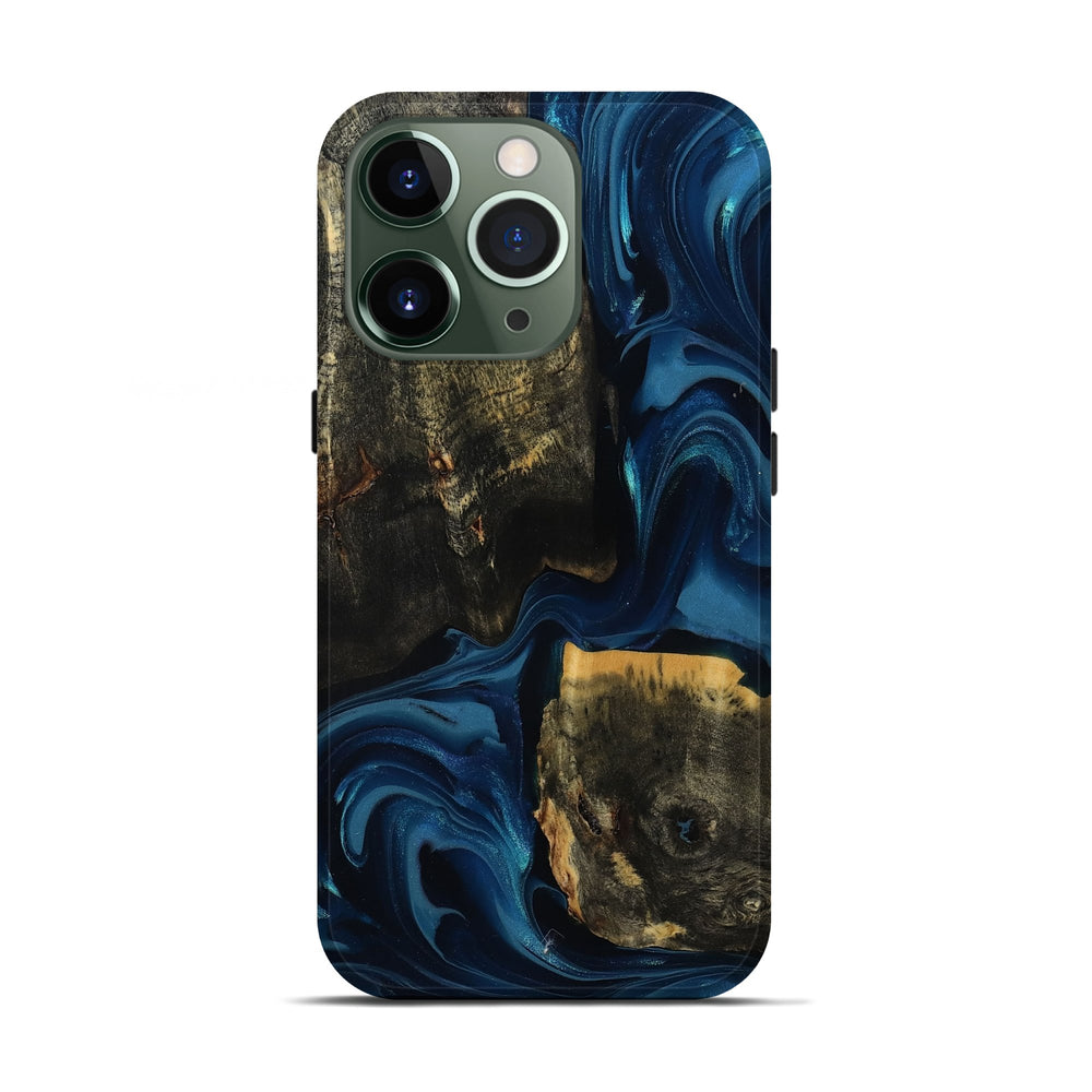 Our Live Edge cases are made from an amazing combination of stabilized wood burl and colored resin. Our stabilization process hardens the wood to protect against cracks and breaks. We do every step of the process at our shop in Northern Indiana. Perfectly fits the iPhone 13 Pro.