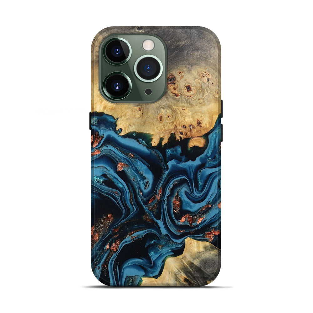Our Live Edge cases are made from an amazing combination of stabilized wood burl and colored resin. Our stabilization process hardens the wood to protect against cracks and breaks. We do every step of the process at our shop in Northern Indiana. Perfectly fits the iPhone 13 Pro.