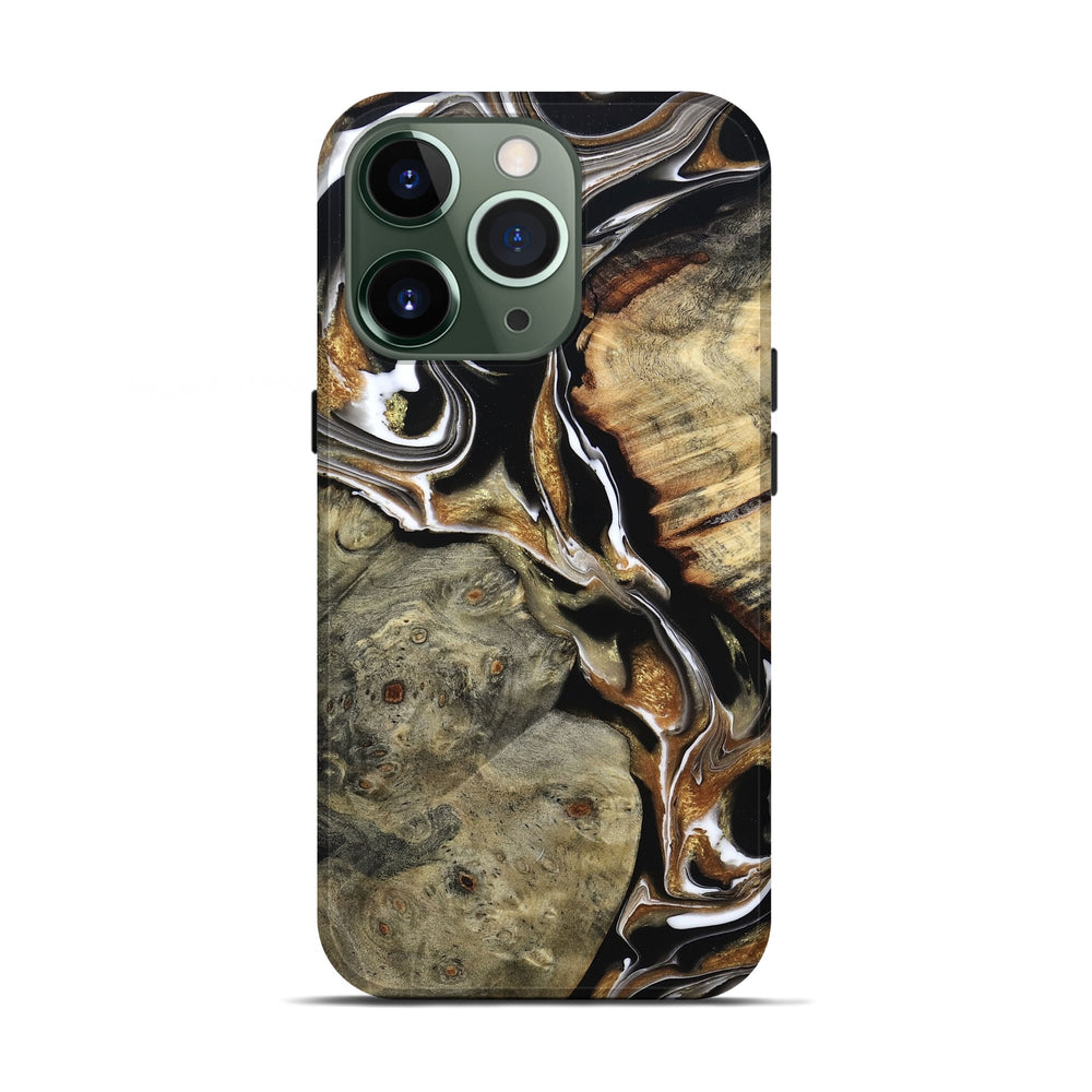 Our Live Edge cases are made from an amazing combination of stabilized wood burl and colored resin. Our stabilization process hardens the wood to protect against cracks and breaks. We do every step of the process at our shop in Northern Indiana. Perfectly fits the iPhone 13 Pro.