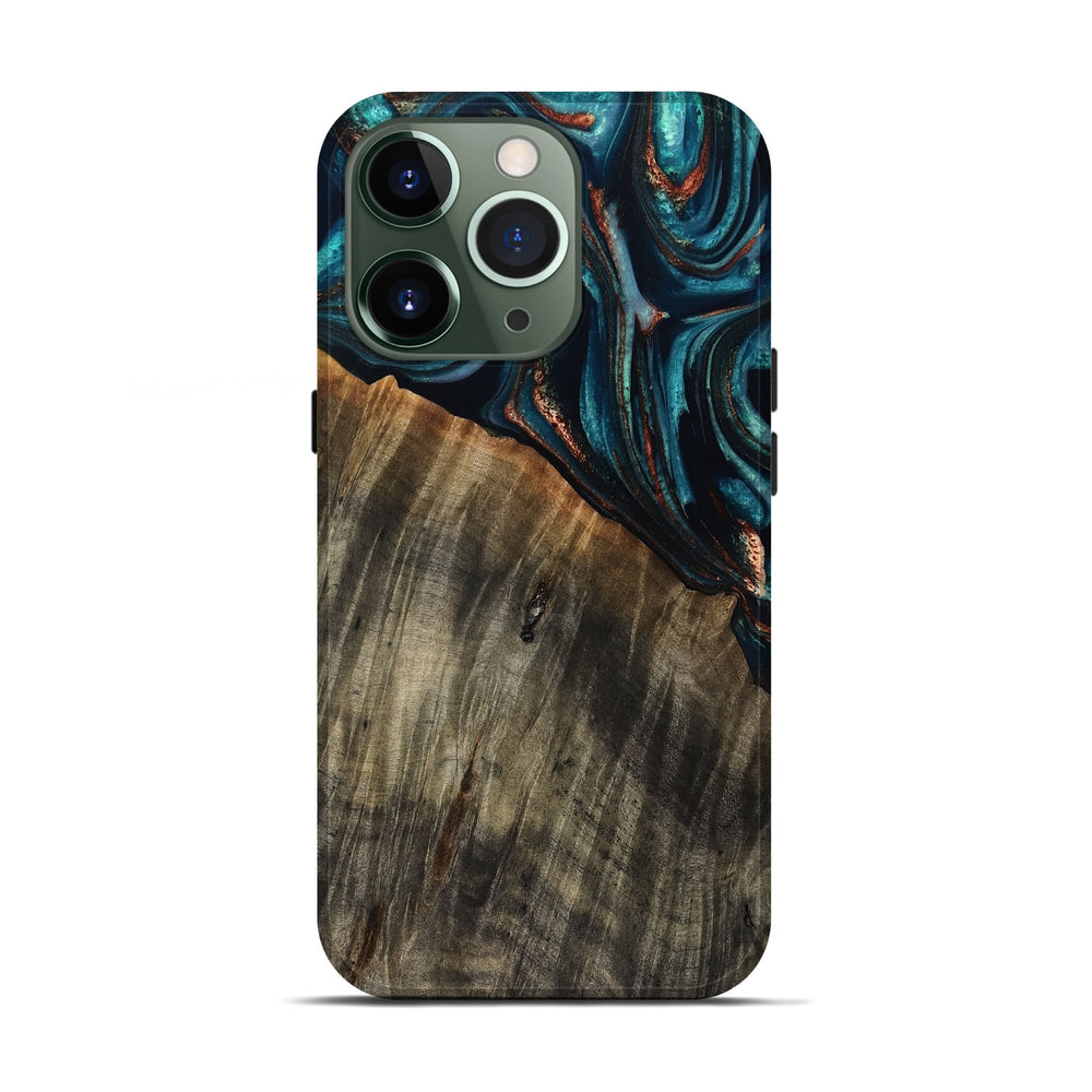 Our Live Edge cases are made from an amazing combination of stabilized wood burl and colored resin. Our stabilization process hardens the wood to protect against cracks and breaks. We do every step of the process at our shop in Northern Indiana. Perfectly fits the iPhone 13 Pro.