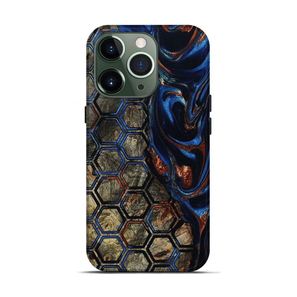 Our Live Edge cases are made from an amazing combination of stabilized wood burl and colored resin. Our stabilization process hardens the wood to protect against cracks and breaks. We do every step of the process at our shop in Northern Indiana. Perfectly fits the iPhone 13 Pro.