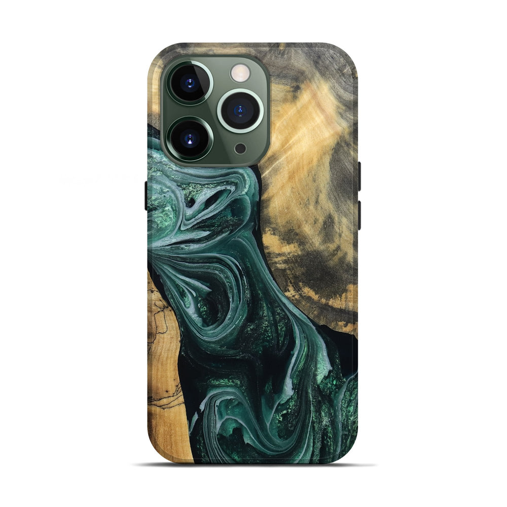 Our Live Edge cases are made from an amazing combination of stabilized wood burl and colored resin. Our stabilization process hardens the wood to protect against cracks and breaks. We do every step of the process at our shop in Northern Indiana. Perfectly fits the iPhone 13 Pro.