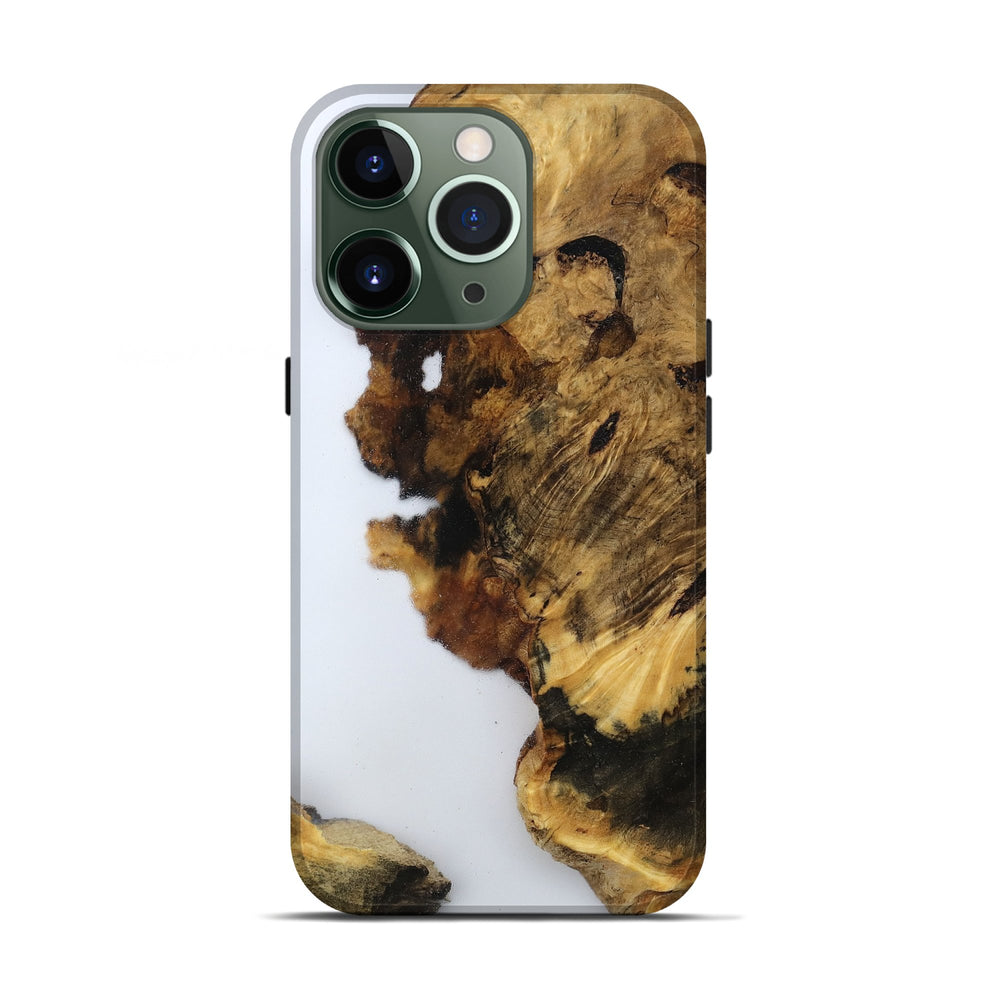Our Live Edge cases are made from an amazing combination of stabilized wood burl and colored resin. Our stabilization process hardens the wood to protect against cracks and breaks. We do every step of the process at our shop in Northern Indiana. Perfectly fits the iPhone 13 Pro.