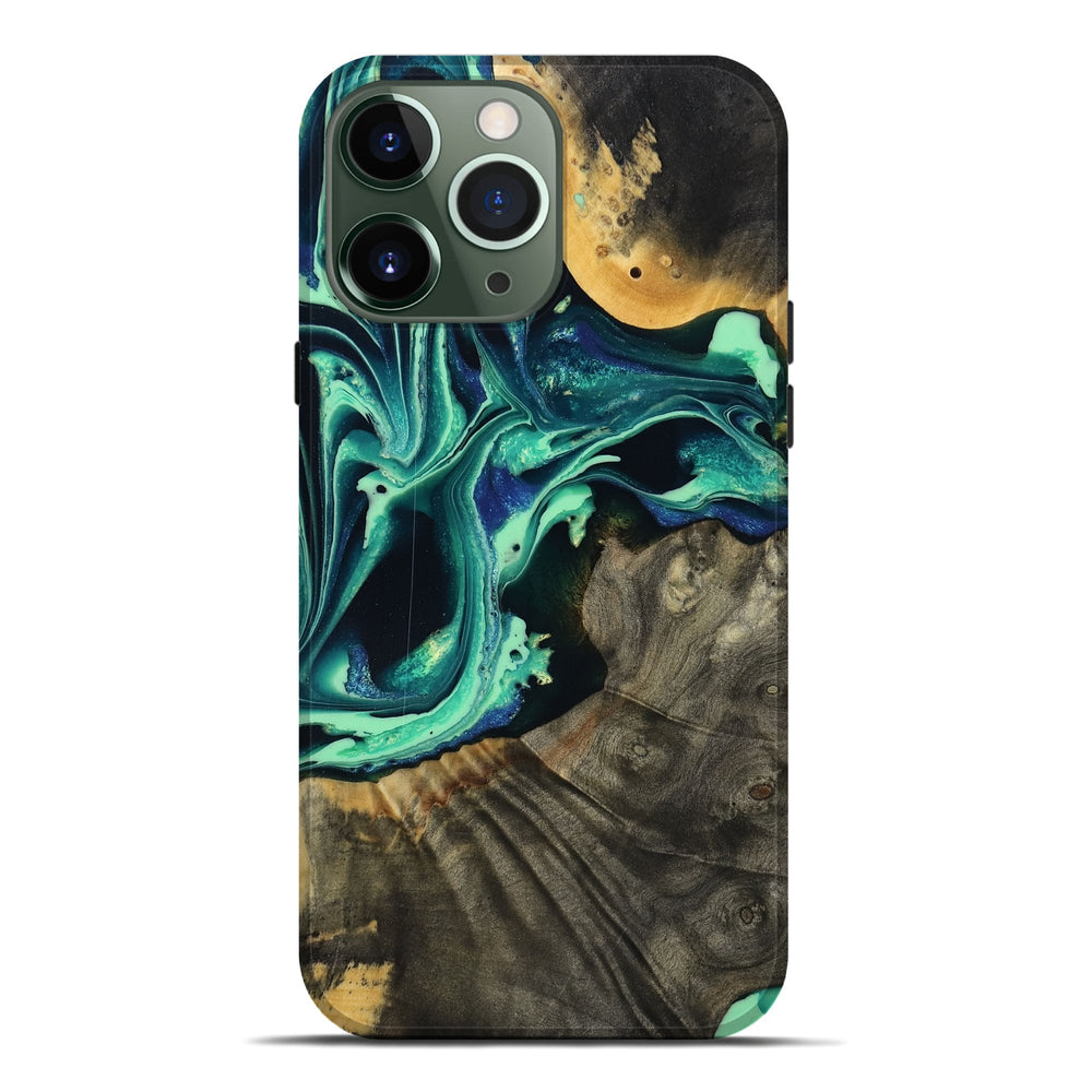 Our Live Edge cases are made from an amazing combination of stabilized wood burl and colored resin. Our stabilization process hardens the wood to protect against cracks and breaks. We do every step of the process at our shop in Northern Indiana. Perfectly fits the iPhone 13 Pro Max.