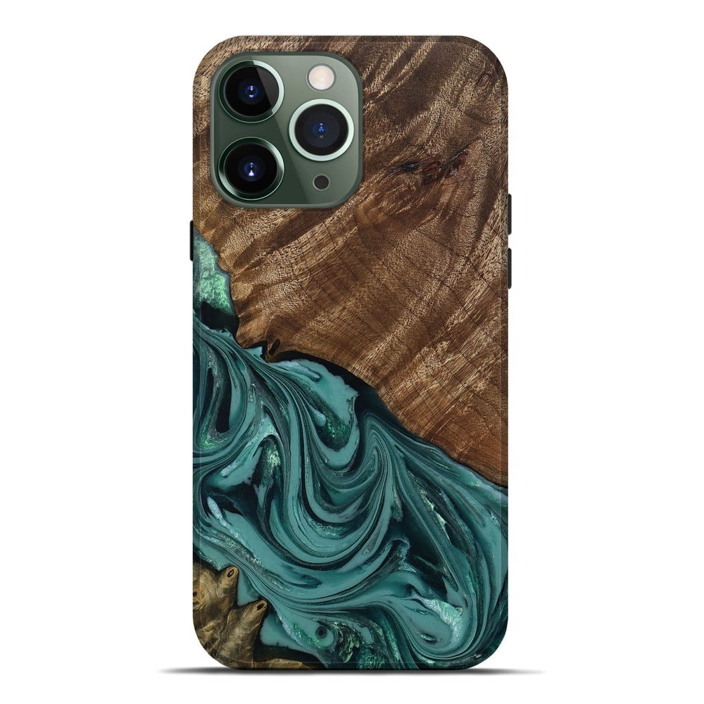 Our Live Edge cases are made from an amazing combination of stabilized wood burl and colored resin. Our stabilization process hardens the wood to protect against cracks and breaks. We do every step of the process at our shop in Northern Indiana. Perfectly fits the iPhone 13 Pro Max.
