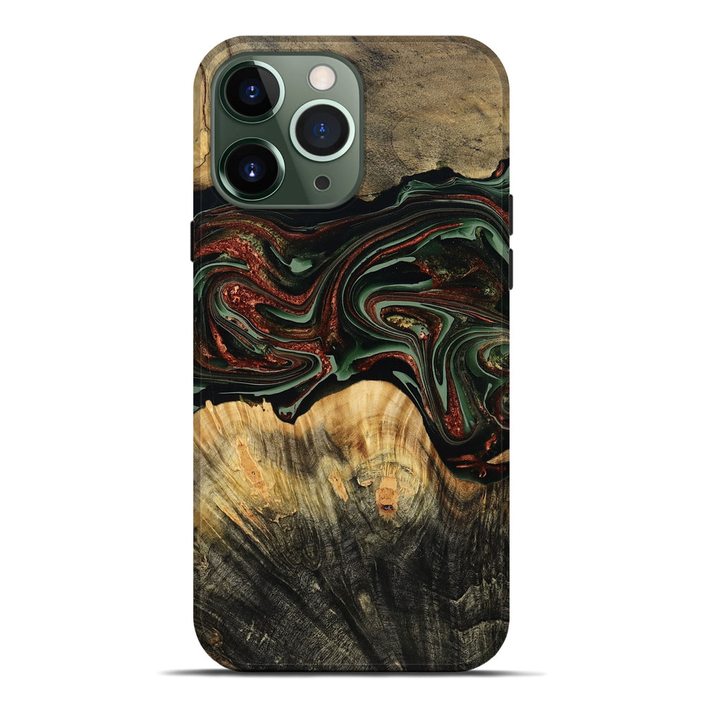 Our Live Edge cases are made from an amazing combination of stabilized wood burl and colored resin. Our stabilization process hardens the wood to protect against cracks and breaks. We do every step of the process at our shop in Northern Indiana. Perfectly fits the iPhone 13 Pro Max.