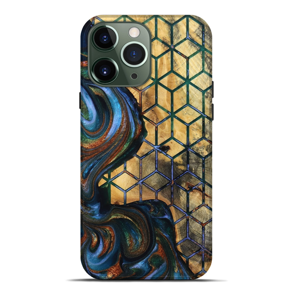 Our Live Edge cases are made from an amazing combination of stabilized wood burl and colored resin. Our stabilization process hardens the wood to protect against cracks and breaks. We do every step of the process at our shop in Northern Indiana. Perfectly fits the iPhone 13 Pro Max.