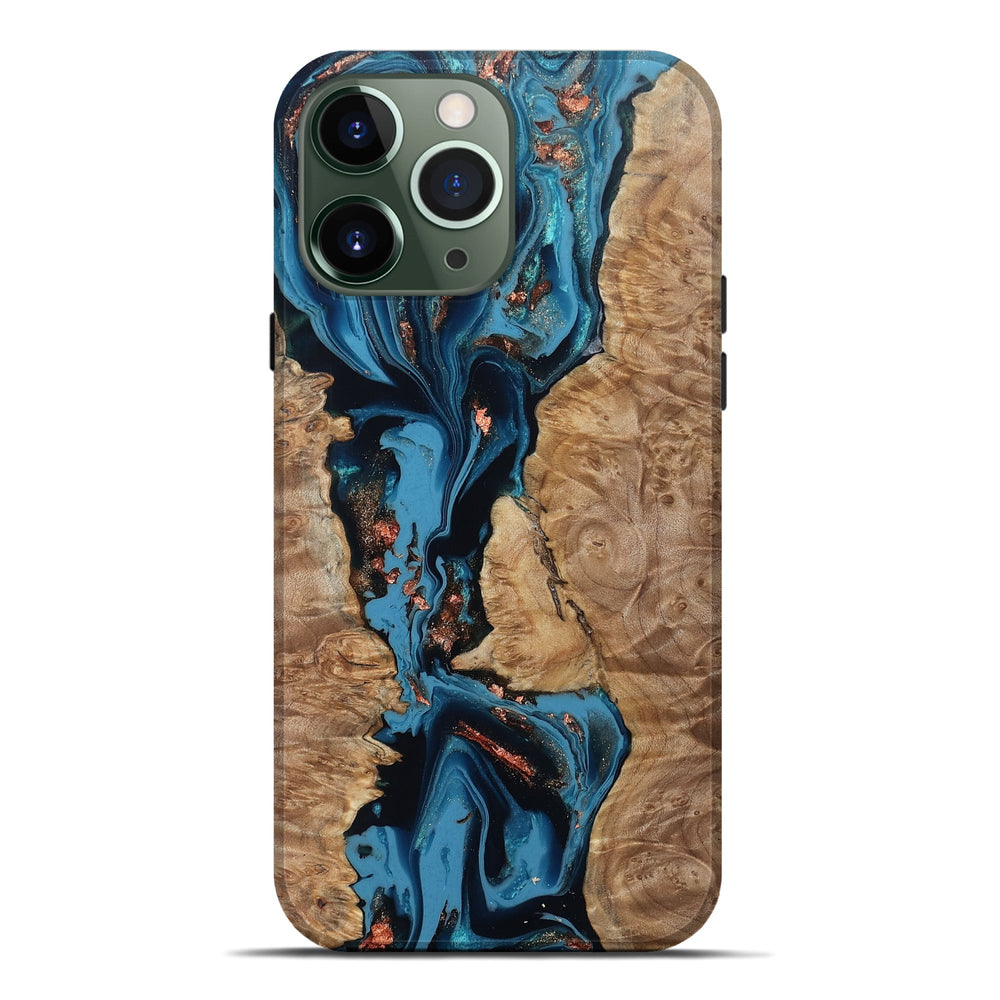 Our Live Edge cases are made from an amazing combination of stabilized wood burl and colored resin. Our stabilization process hardens the wood to protect against cracks and breaks. We do every step of the process at our shop in Northern Indiana. Perfectly fits the iPhone 13 Pro Max.