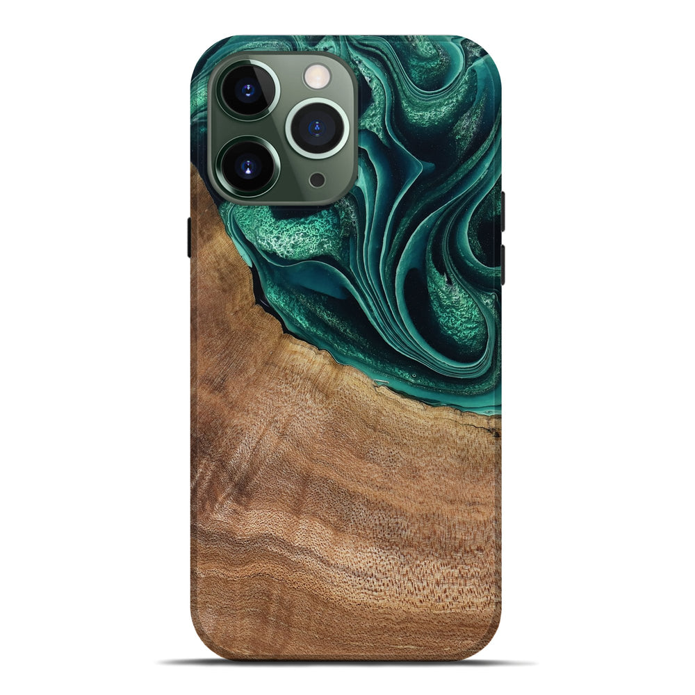 Our Live Edge cases are made from an amazing combination of stabilized wood burl and colored resin. Our stabilization process hardens the wood to protect against cracks and breaks. We do every step of the process at our shop in Northern Indiana. Perfectly fits the iPhone 13 Pro Max.