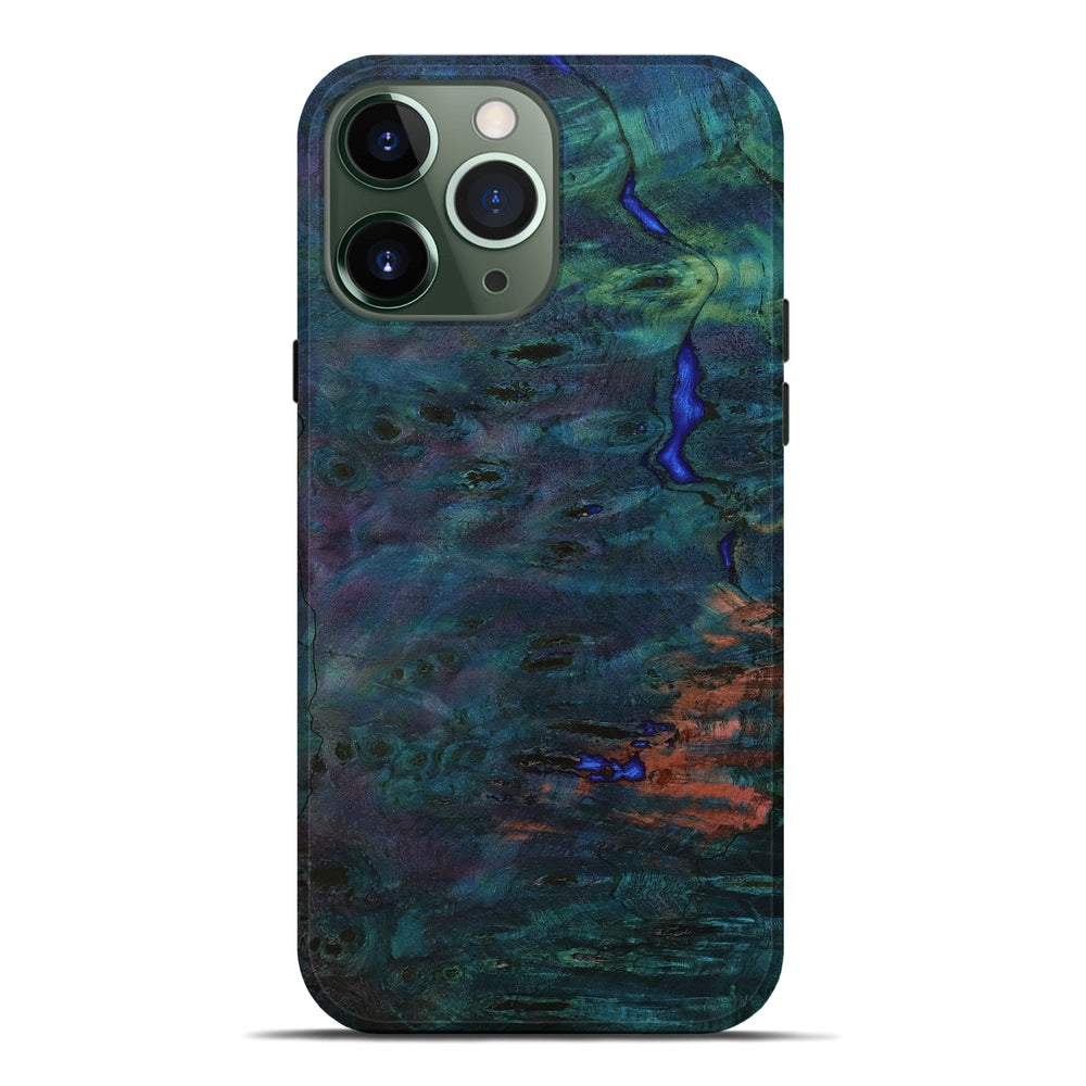 Our Live Edge cases are made from an amazing combination of stabilized wood burl and colored resin. Our stabilization process hardens the wood to protect against cracks and breaks. We do every step of the process at our shop in Northern Indiana. Perfectly fits the iPhone 13 Pro Max.