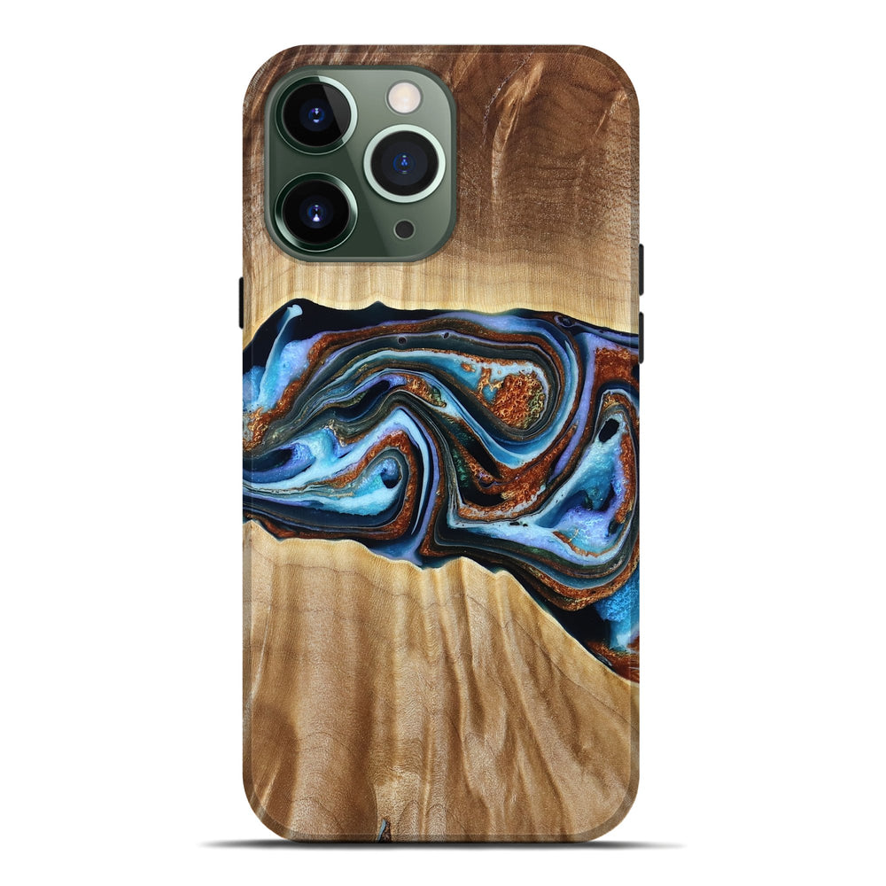 Our Live Edge cases are made from an amazing combination of stabilized wood burl and colored resin. Our stabilization process hardens the wood to protect against cracks and breaks. We do every step of the process at our shop in Northern Indiana. Perfectly fits the iPhone 13 Pro Max.