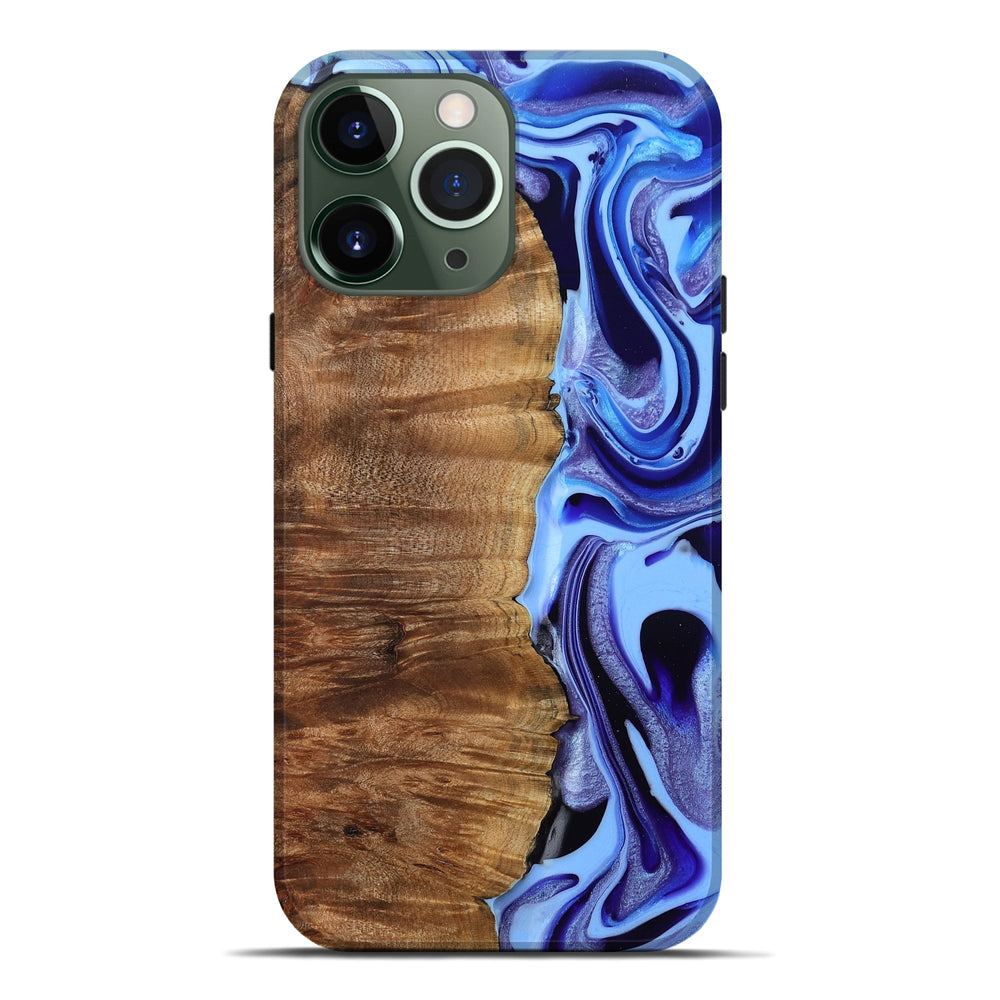 Our Live Edge cases are made from an amazing combination of stabilized wood burl and colored resin. Our stabilization process hardens the wood to protect against cracks and breaks. We do every step of the process at our shop in Northern Indiana. Perfectly fits the iPhone 13 Pro Max.