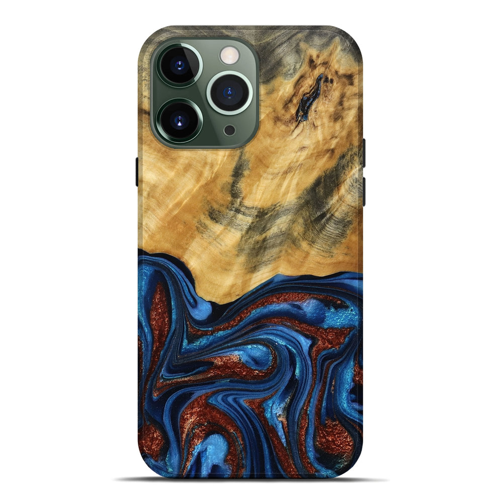 Our Live Edge cases are made from an amazing combination of stabilized wood burl and colored resin. Our stabilization process hardens the wood to protect against cracks and breaks. We do every step of the process at our shop in Northern Indiana. Perfectly fits the iPhone 13 Pro Max.