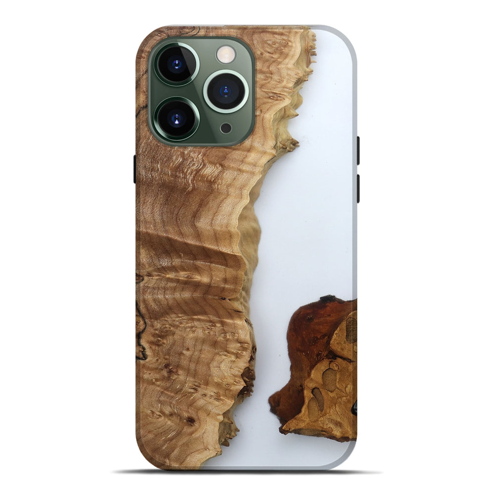 Our Live Edge cases are made from an amazing combination of stabilized wood burl and colored resin. Our stabilization process hardens the wood to protect against cracks and breaks. We do every step of the process at our shop in Northern Indiana. Perfectly fits the iPhone 13 Pro Max.