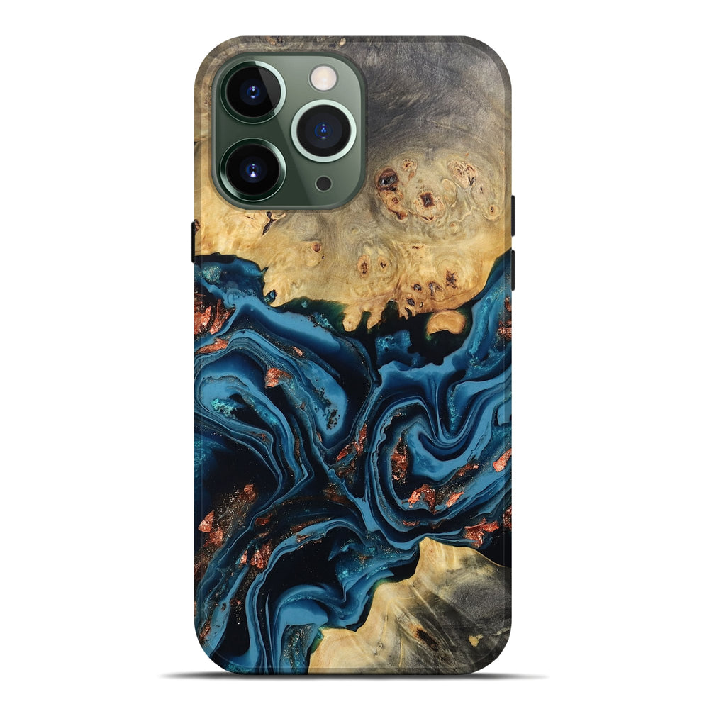 Our Live Edge cases are made from an amazing combination of stabilized wood burl and colored resin. Our stabilization process hardens the wood to protect against cracks and breaks. We do every step of the process at our shop in Northern Indiana. Perfectly fits the iPhone 13 Pro Max.