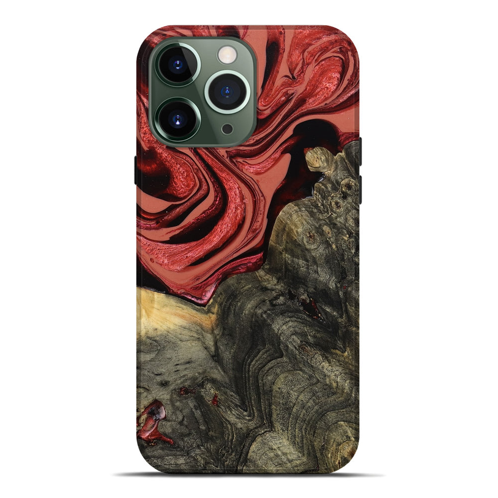 Our Live Edge cases are made from an amazing combination of stabilized wood burl and colored resin. Our stabilization process hardens the wood to protect against cracks and breaks. We do every step of the process at our shop in Northern Indiana. Perfectly fits the iPhone 13 Pro Max.