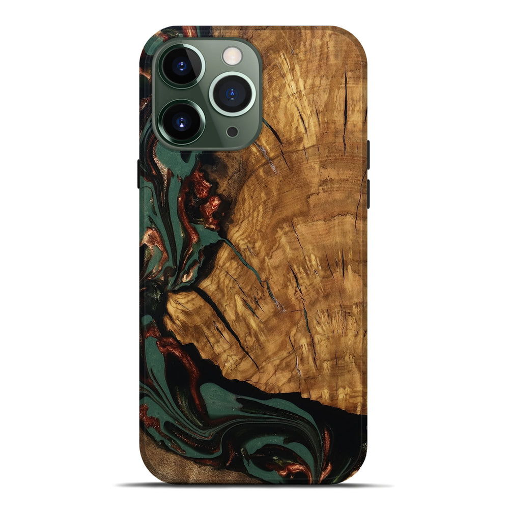 Our Live Edge cases are made from an amazing combination of stabilized wood burl and colored resin. Our stabilization process hardens the wood to protect against cracks and breaks. We do every step of the process at our shop in Northern Indiana. Perfectly fits the iPhone 13 Pro Max.
