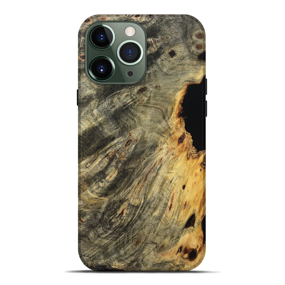 Our Live Edge cases are made from an amazing combination of stabilized wood burl and colored resin. Our stabilization process hardens the wood to protect against cracks and breaks. We do every step of the process at our shop in Northern Indiana. Perfectly fits the iPhone 13 Pro Max.