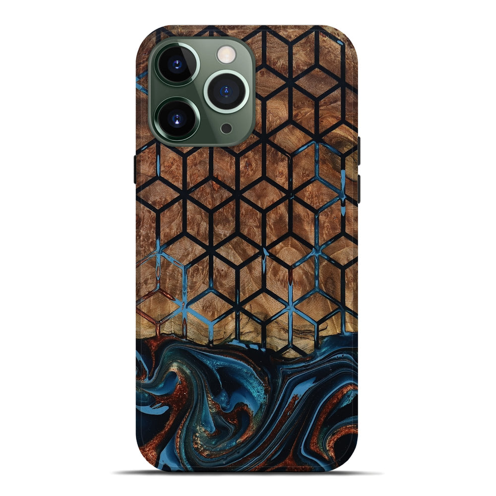 Our Live Edge cases are made from an amazing combination of stabilized wood burl and colored resin. Our stabilization process hardens the wood to protect against cracks and breaks. We do every step of the process at our shop in Northern Indiana. Perfectly fits the iPhone 13 Pro Max.