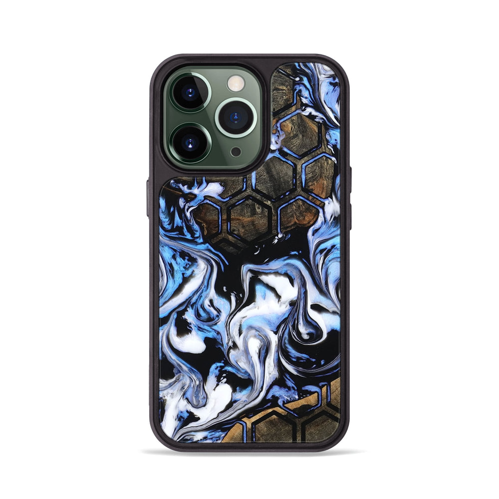 Isai has beautiful Buckeye wood with swirling patterns in blue and white. The hexagonal shapes create a nice contrast, adding a playful touch to the art.