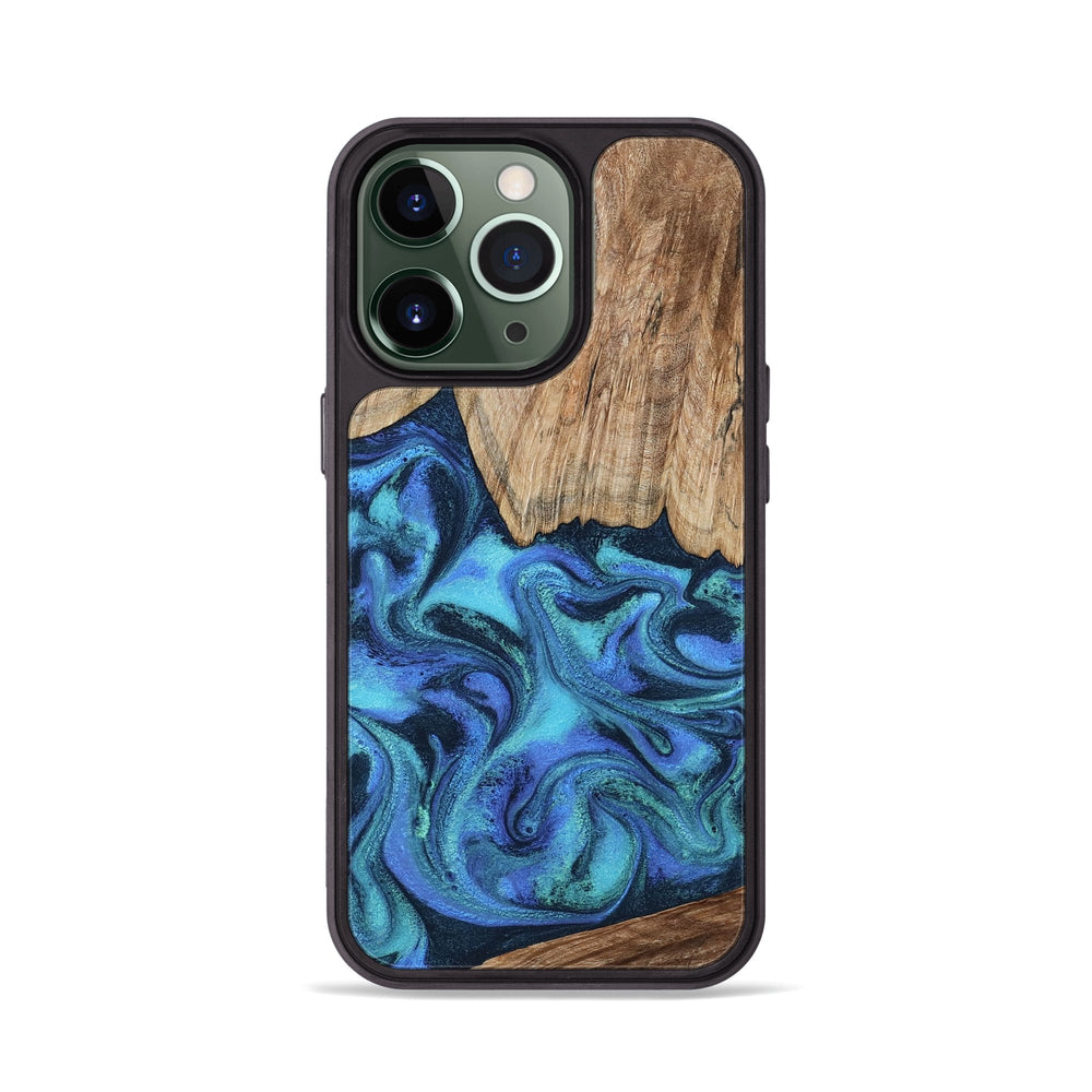 Leslie is a striking maple wood piece with smooth, flowing patterns in shades of blue and teal. Its natural grains complement the vibrant colors, creating a soothing visual harmony.