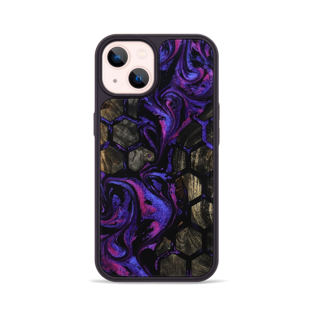 Aya has bold swirls of purple and pink flowing across a dark background. The striking hexagonal pattern adds a unique touch, blending natural wood texture with vibrant colors.