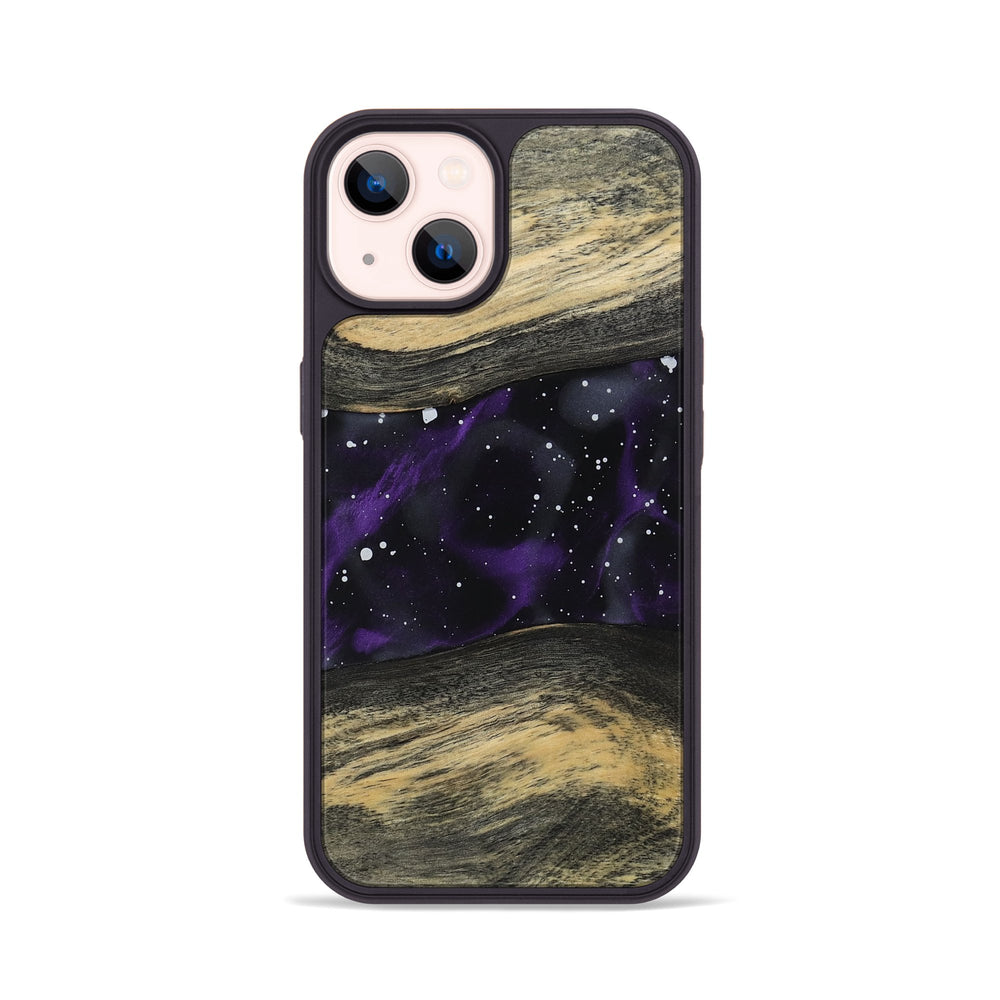 Brielle has beautiful Buckeye wood with gentle waves and a rich, dark grain. It features a striking design that resembles a cosmic scene with purple and white hues.
