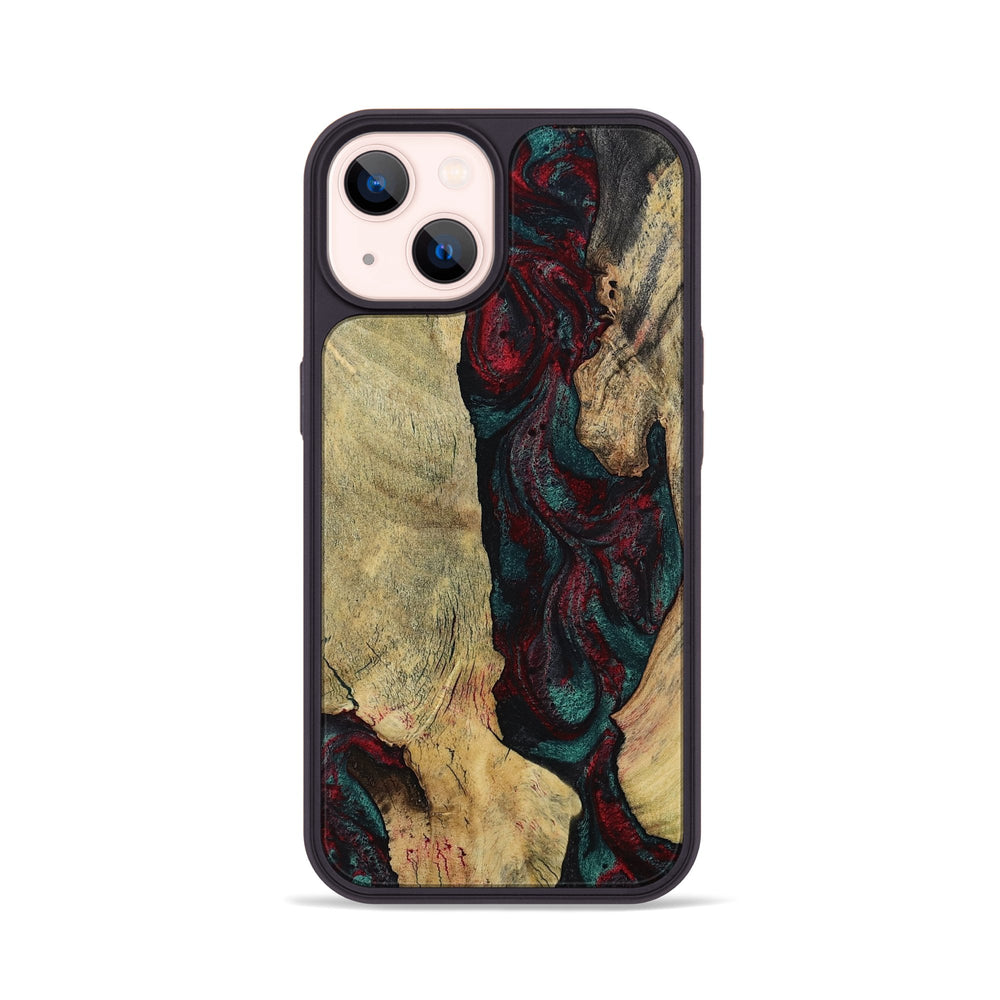Jaydin has a unique swirled pattern in rich reds and deep greens. The light wood contrasts beautifully with the vibrant colors, creating an inviting and warm feel.