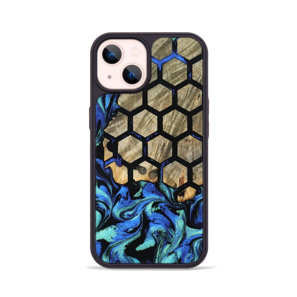 Kiara features a beautiful mix of Buckeye wood with swirling shades of blue and green. The pattern resembles a honeycomb, adding a unique texture to the artwork.