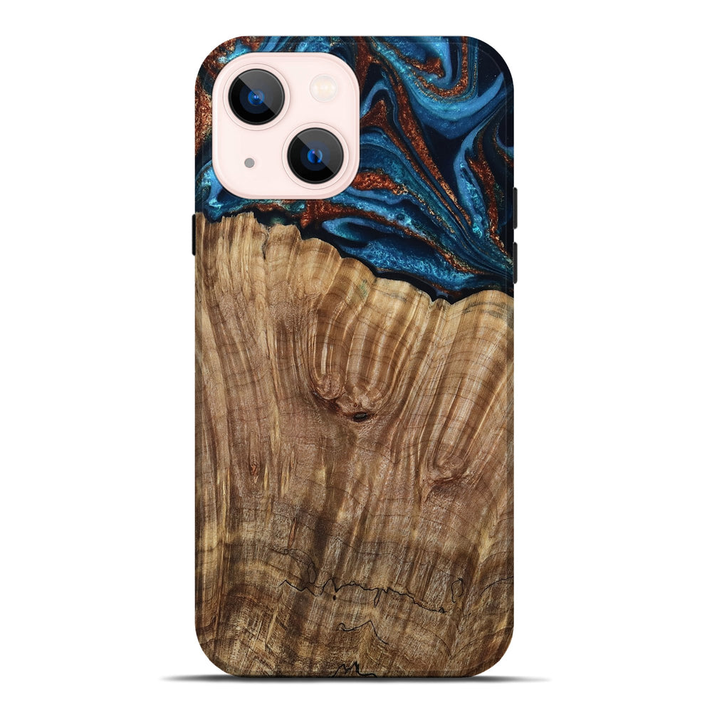 Our Live Edge cases are made from an amazing combination of stabilized wood burl and colored resin. Our stabilization process hardens the wood to protect against cracks and breaks. We do every step of the process at our shop in Northern Indiana. Perfectly fits the iPhone 14 Plus.