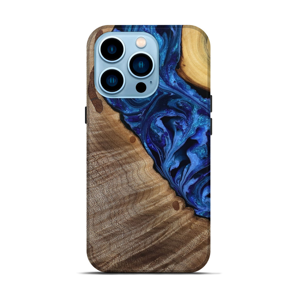 Our Live Edge cases are made from an amazing combination of stabilized wood burl and colored resin. Our stabilization process hardens the wood to protect against cracks and breaks. We do every step of the process at our shop in Northern Indiana. Perfectly fits the iPhone 14 Pro.