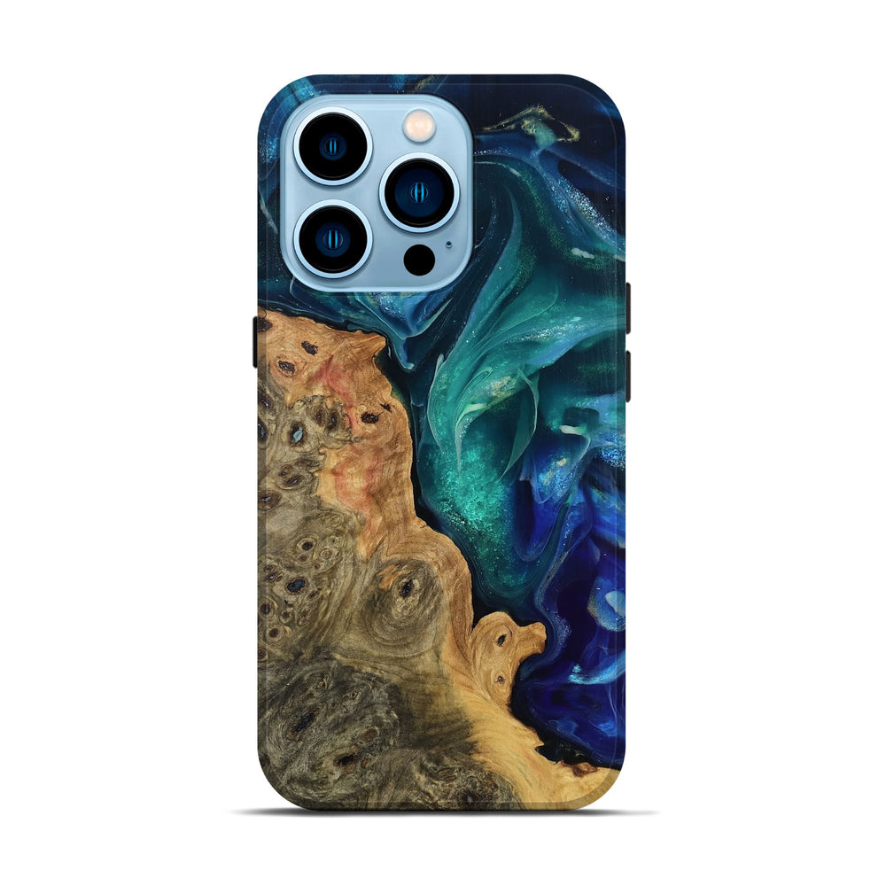 Our Live Edge cases are made from an amazing combination of stabilized wood burl and colored resin. Our stabilization process hardens the wood to protect against cracks and breaks. We do every step of the process at our shop in Northern Indiana. Perfectly fits the iPhone 14 Pro.