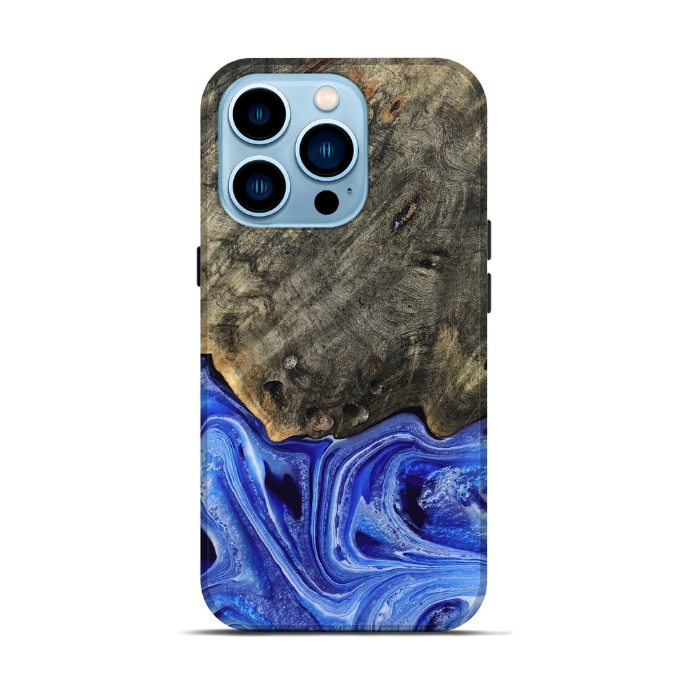 Our Live Edge cases are made from an amazing combination of stabilized wood burl and colored resin. Our stabilization process hardens the wood to protect against cracks and breaks. We do every step of the process at our shop in Northern Indiana. Perfectly fits the iPhone 14 Pro.