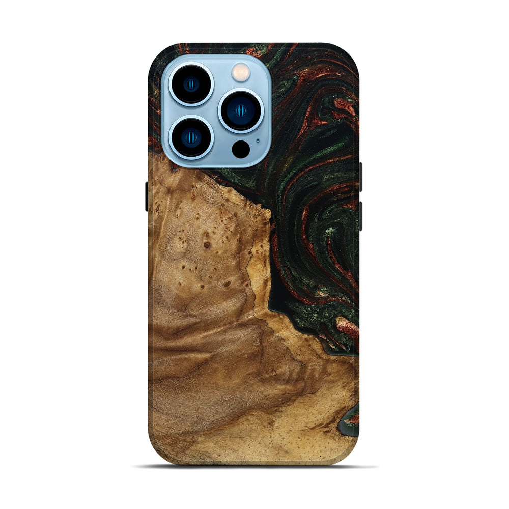 Our Live Edge cases are made from an amazing combination of stabilized wood burl and colored resin. Our stabilization process hardens the wood to protect against cracks and breaks. We do every step of the process at our shop in Northern Indiana. Perfectly fits the iPhone 14 Pro.