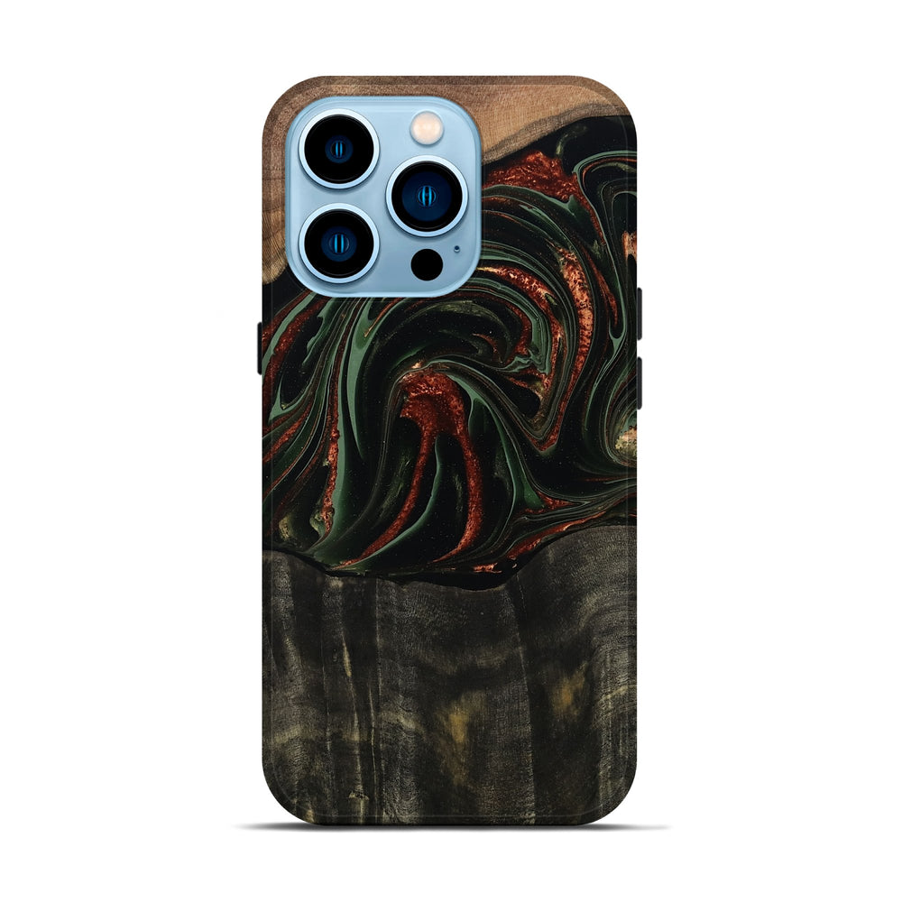 Our Live Edge cases are made from an amazing combination of stabilized wood burl and colored resin. Our stabilization process hardens the wood to protect against cracks and breaks. We do every step of the process at our shop in Northern Indiana. Perfectly fits the iPhone 14 Pro.