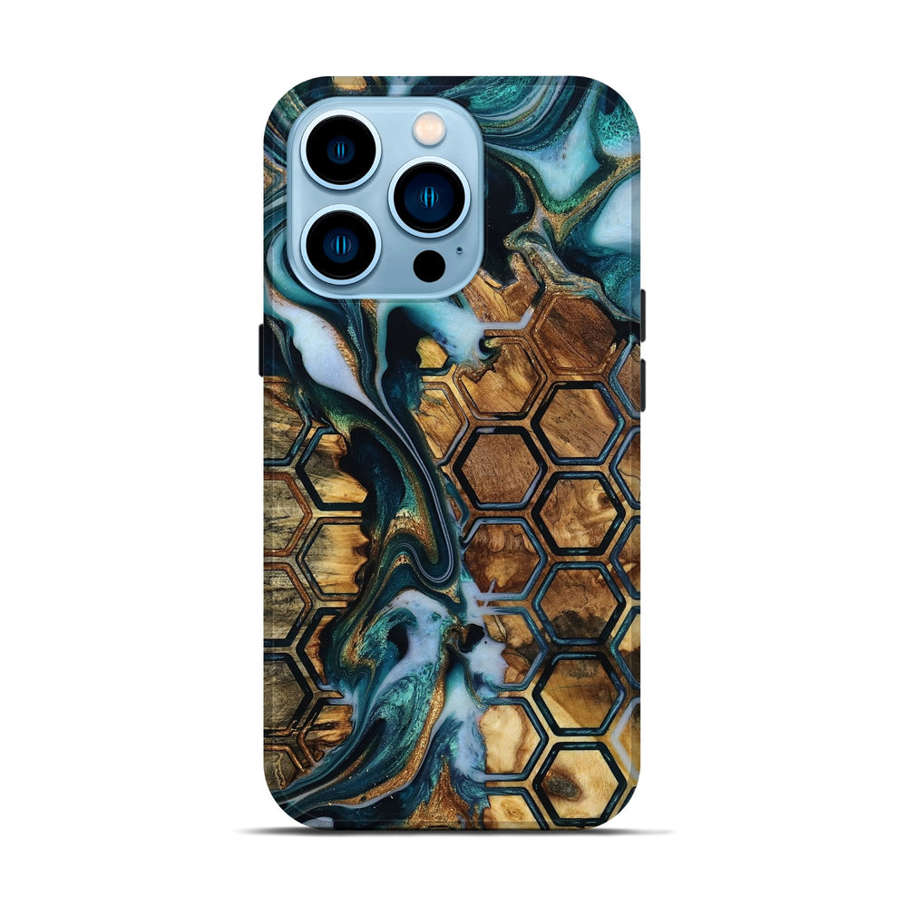 Our Live Edge cases are made from an amazing combination of stabilized wood burl and colored resin. Our stabilization process hardens the wood to protect against cracks and breaks. We do every step of the process at our shop in Northern Indiana. Perfectly fits the iPhone 14 Pro.