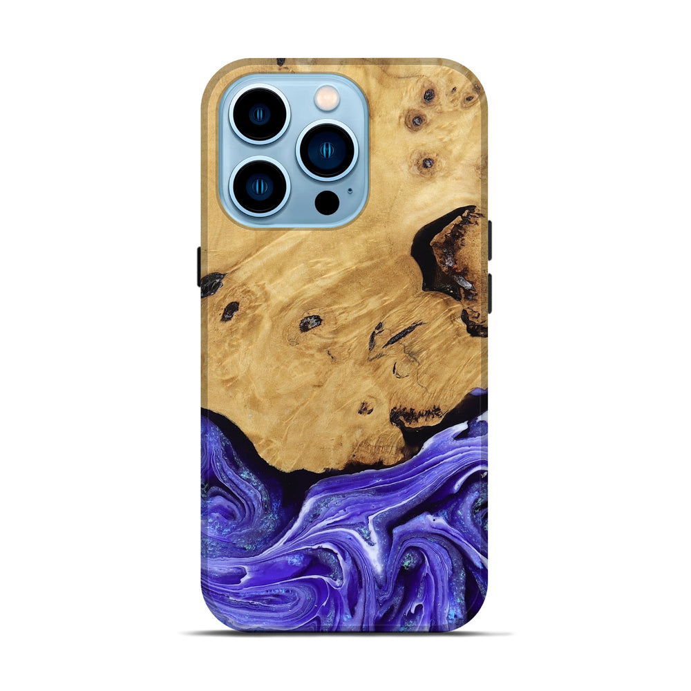 Our Live Edge cases are made from an amazing combination of stabilized wood burl and colored resin. Our stabilization process hardens the wood to protect against cracks and breaks. We do every step of the process at our shop in Northern Indiana. Perfectly fits the iPhone 14 Pro.