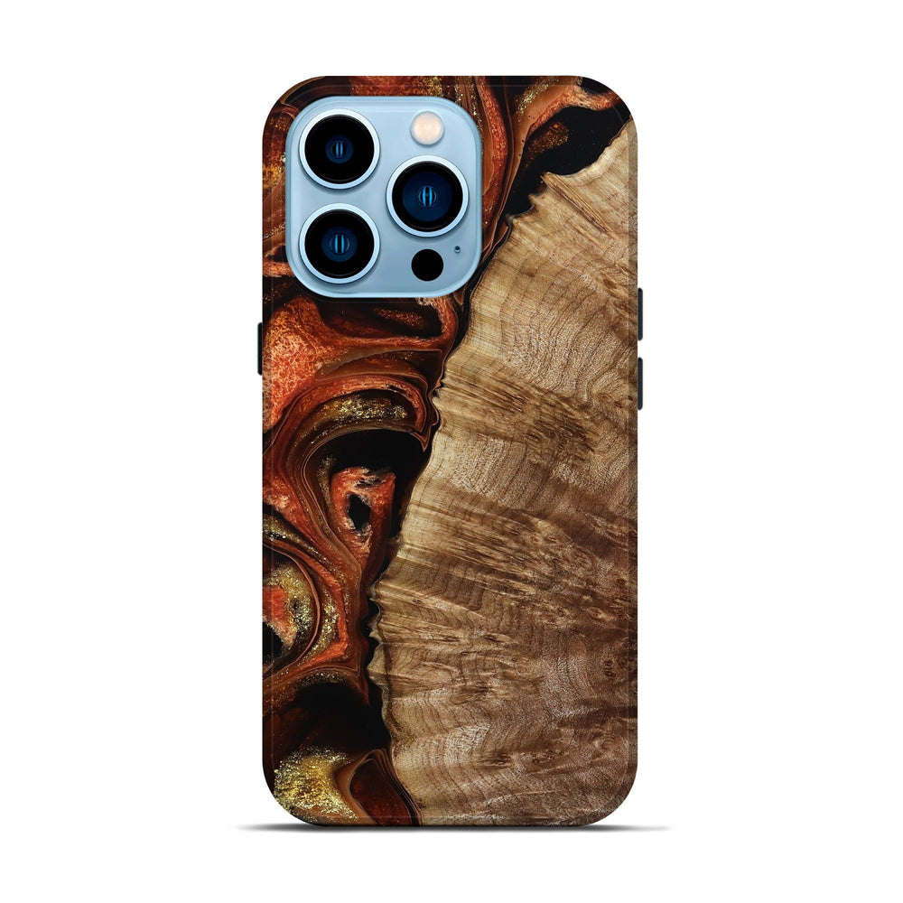 Our Live Edge cases are made from an amazing combination of stabilized wood burl and colored resin. Our stabilization process hardens the wood to protect against cracks and breaks. We do every step of the process at our shop in Northern Indiana. Perfectly fits the iPhone 14 Pro.