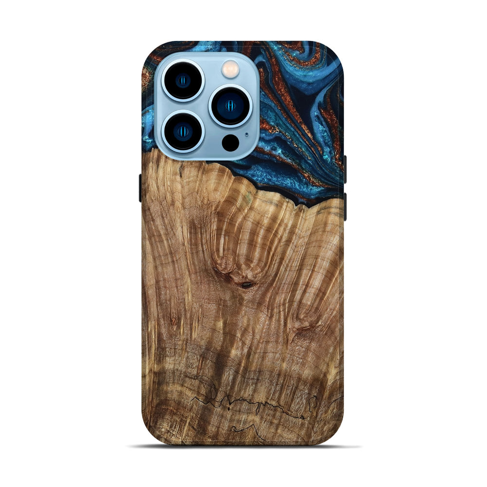 Our Live Edge cases are made from an amazing combination of stabilized wood burl and colored resin. Our stabilization process hardens the wood to protect against cracks and breaks. We do every step of the process at our shop in Northern Indiana. Perfectly fits the iPhone 14 Pro.