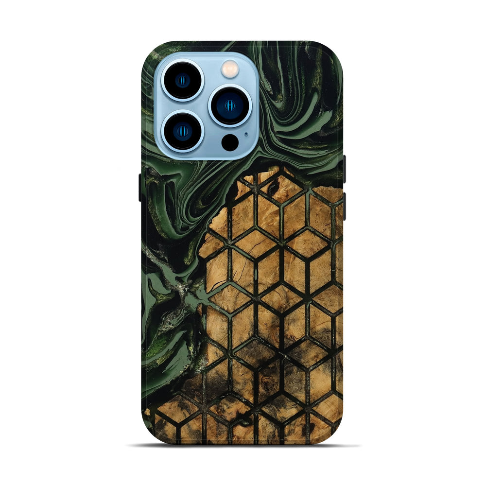 Our Live Edge cases are made from an amazing combination of stabilized wood burl and colored resin. Our stabilization process hardens the wood to protect against cracks and breaks. We do every step of the process at our shop in Northern Indiana. Perfectly fits the iPhone 14 Pro.