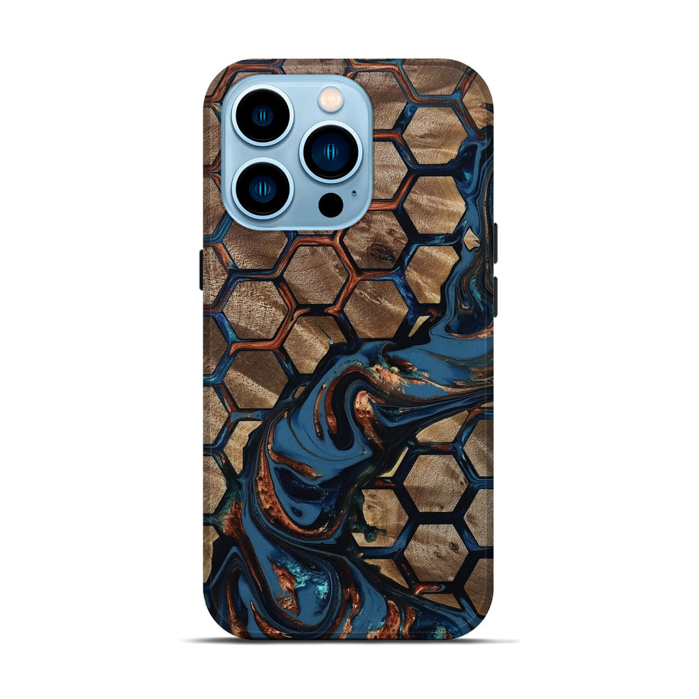 Our Live Edge cases are made from an amazing combination of stabilized wood burl and colored resin. Our stabilization process hardens the wood to protect against cracks and breaks. We do every step of the process at our shop in Northern Indiana. Perfectly fits the iPhone 14 Pro.