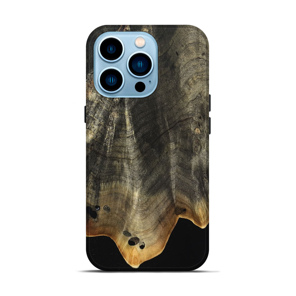 Our Live Edge cases are made from an amazing combination of stabilized wood burl and colored resin. Our stabilization process hardens the wood to protect against cracks and breaks. We do every step of the process at our shop in Northern Indiana. Perfectly fits the iPhone 14 Pro.