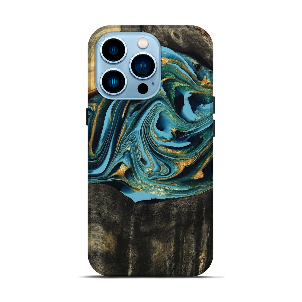Our Live Edge cases are made from an amazing combination of stabilized wood burl and colored resin. Our stabilization process hardens the wood to protect against cracks and breaks. We do every step of the process at our shop in Northern Indiana. Perfectly fits the iPhone 14 Pro.