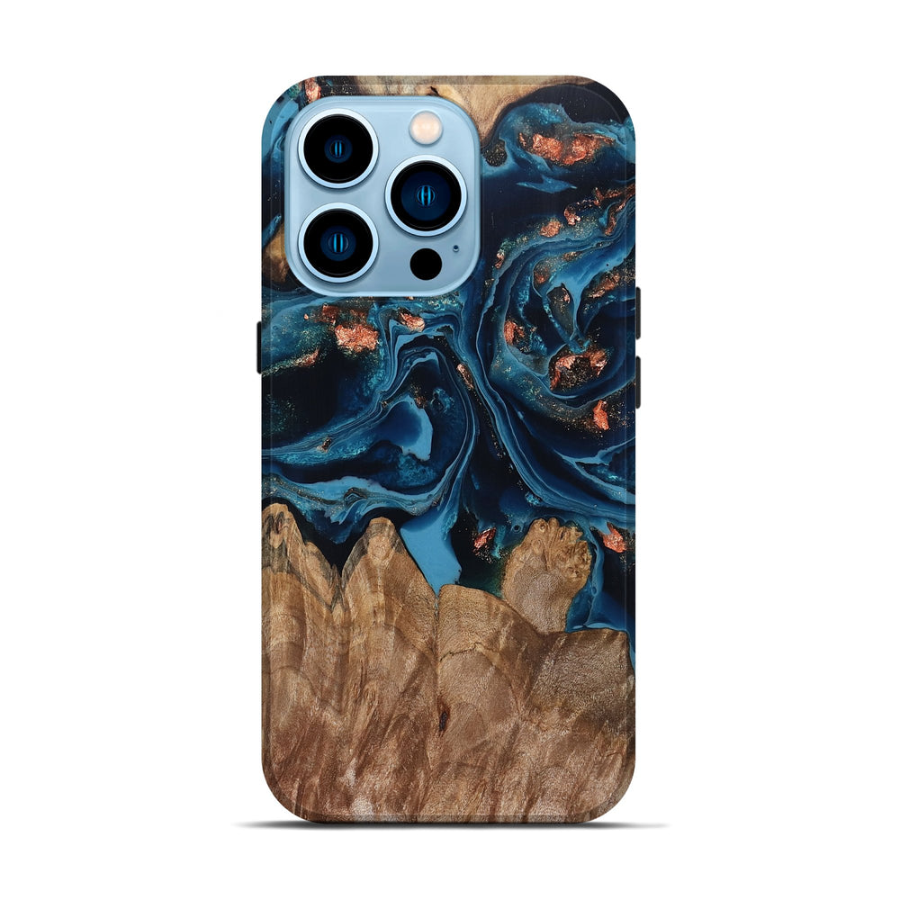 Our Live Edge cases are made from an amazing combination of stabilized wood burl and colored resin. Our stabilization process hardens the wood to protect against cracks and breaks. We do every step of the process at our shop in Northern Indiana. Perfectly fits the iPhone 14 Pro.
