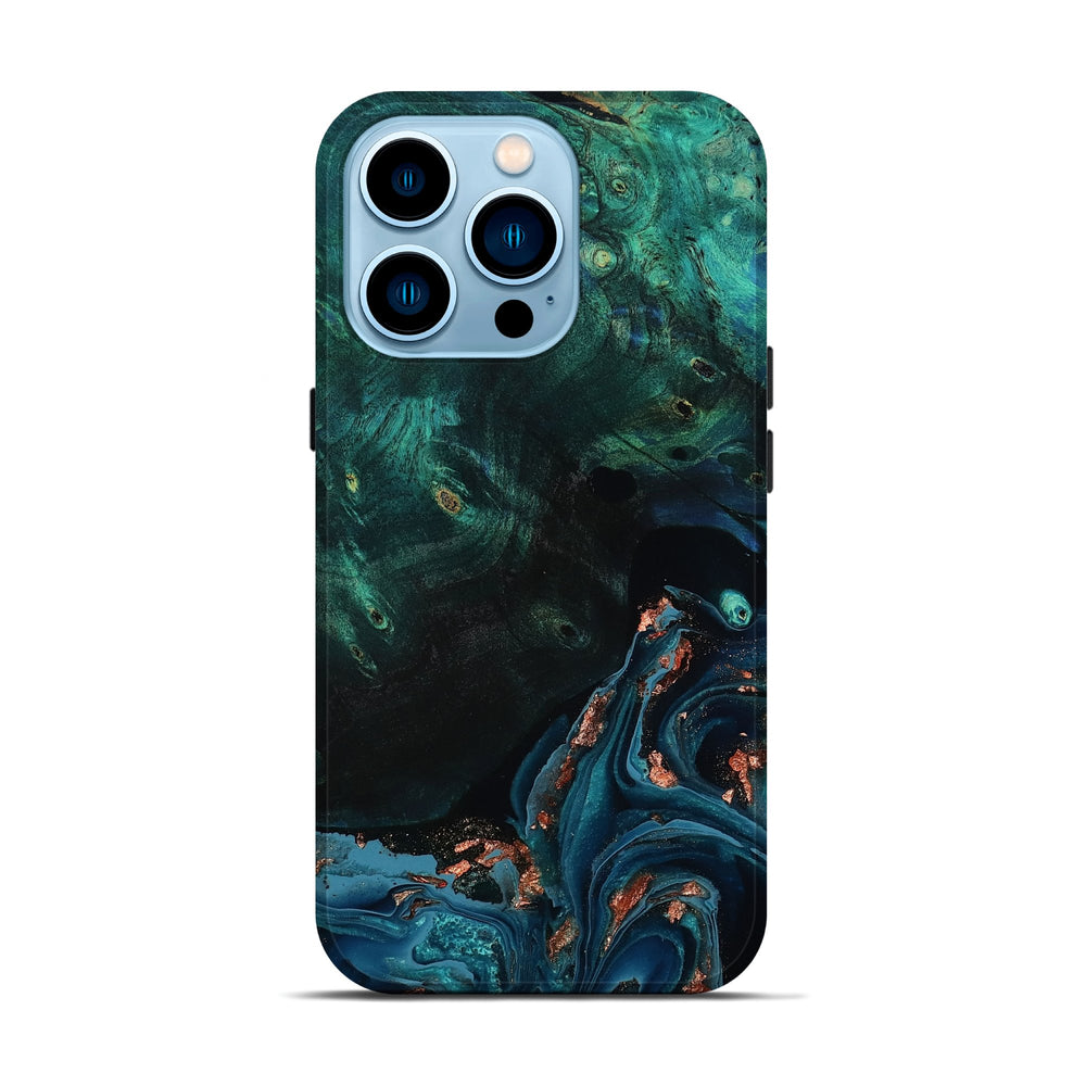 Our Live Edge cases are made from an amazing combination of stabilized wood burl and colored resin. Our stabilization process hardens the wood to protect against cracks and breaks. We do every step of the process at our shop in Northern Indiana. Perfectly fits the iPhone 14 Pro.