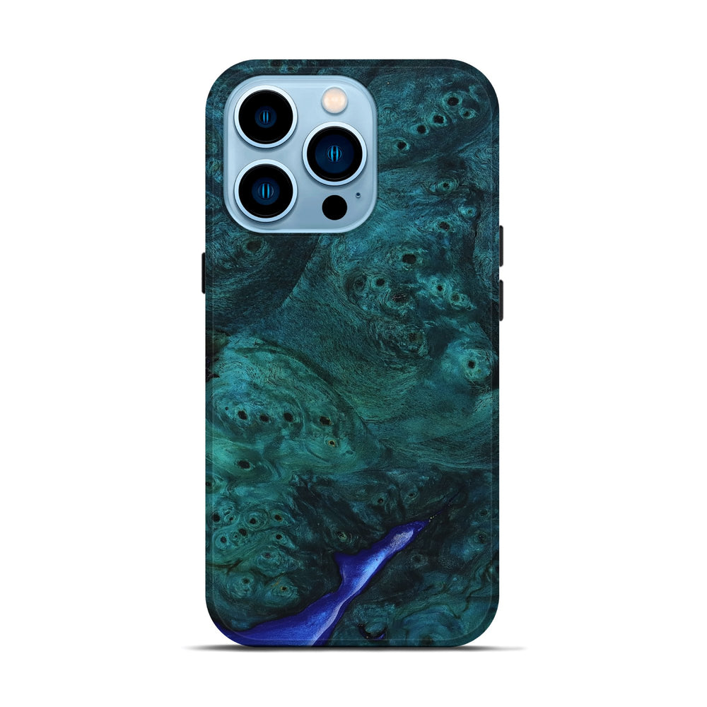 Our Live Edge cases are made from an amazing combination of stabilized wood burl and colored resin. Our stabilization process hardens the wood to protect against cracks and breaks. We do every step of the process at our shop in Northern Indiana. Perfectly fits the iPhone 14 Pro.