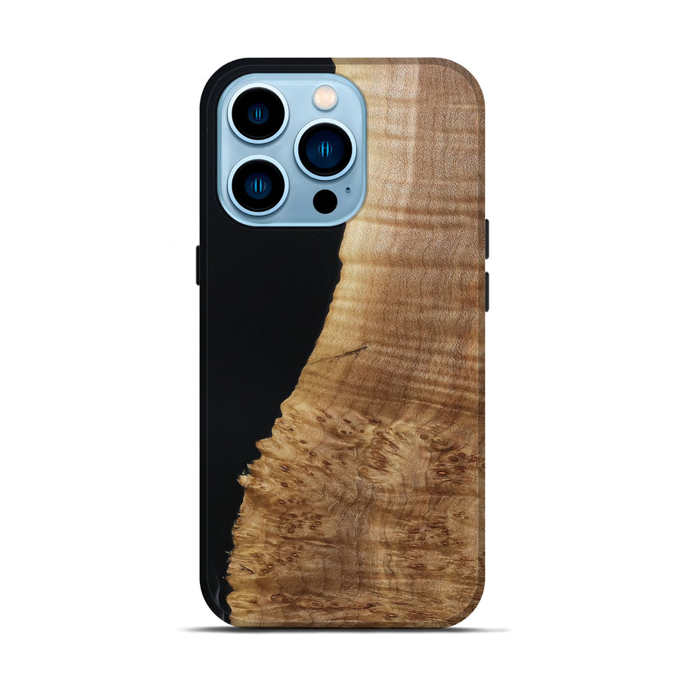 Our Live Edge cases are made from an amazing combination of stabilized wood burl and colored resin. Our stabilization process hardens the wood to protect against cracks and breaks. We do every step of the process at our shop in Northern Indiana. Perfectly fits the iPhone 14 Pro.