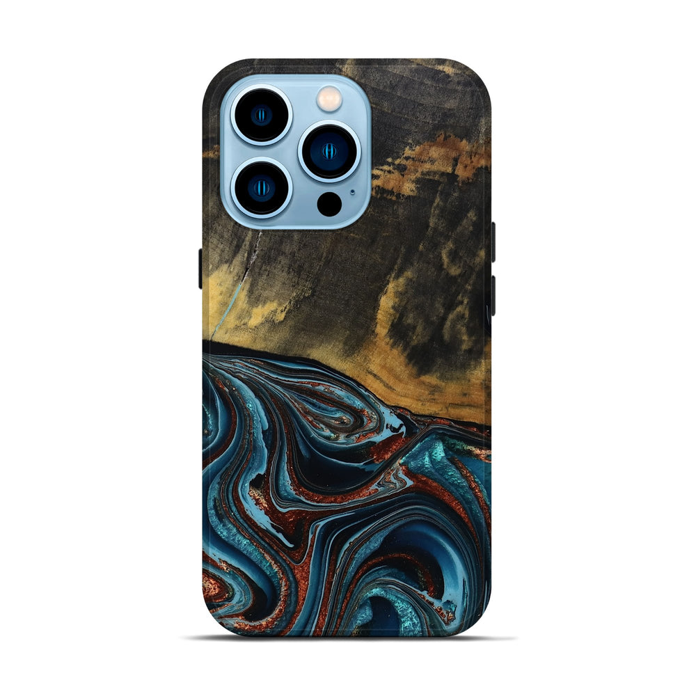 Our Live Edge cases are made from an amazing combination of stabilized wood burl and colored resin. Our stabilization process hardens the wood to protect against cracks and breaks. We do every step of the process at our shop in Northern Indiana. Perfectly fits the iPhone 14 Pro.