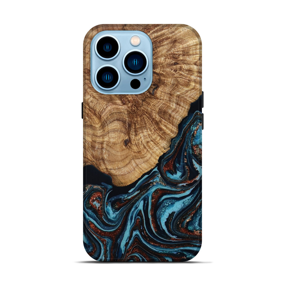 Our Live Edge cases are made from an amazing combination of stabilized wood burl and colored resin. Our stabilization process hardens the wood to protect against cracks and breaks. We do every step of the process at our shop in Northern Indiana. Perfectly fits the iPhone 14 Pro.