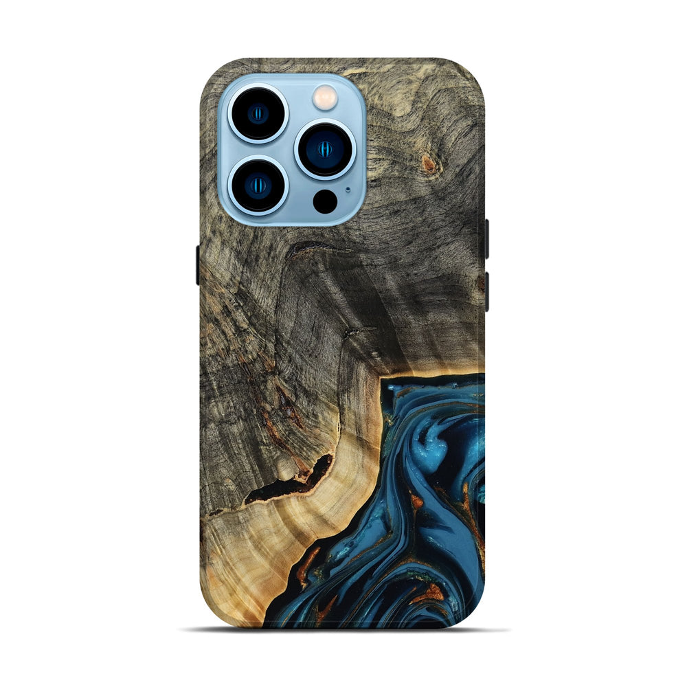Our Live Edge cases are made from an amazing combination of stabilized wood burl and colored resin. Our stabilization process hardens the wood to protect against cracks and breaks. We do every step of the process at our shop in Northern Indiana. Perfectly fits the iPhone 14 Pro.